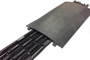 The cable brigde X1 offers the inexpensive protection for power, telephone and data cables. Due to a specially ribbed anti-slip surface, the safe laying of cables in the passage area is possible. The cable bridge X1 made of TPU (Thermoplastic Polyuhrethane) is extremely abrasion-resistant and guarantees excellent grip due to a special material formulation.