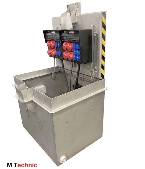 Die elektrischen Verteiler von M Technic sind aus Vollgummi und bieten neben der Schutzart IP 54 auch einen robusten Schutz gegen Kondenswasser, Stöße und Frost, um auch hierdurch unserem hohen Sicherheitsanspruch und dem Anlagenschutz zu entsprechen.